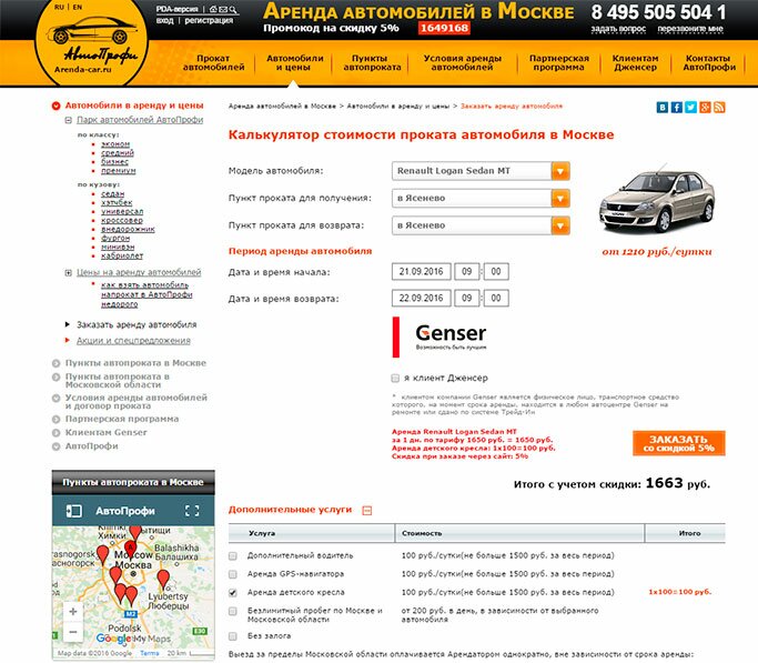В АрендаАвто-прк предлагается прокат автомобиля недорого.«Рено Логан» на сутки обошелся нам в 1 520 рублей (без учета скидки для клиента Genser), а это очень дешево для авто напрокат в Прокопьевске.